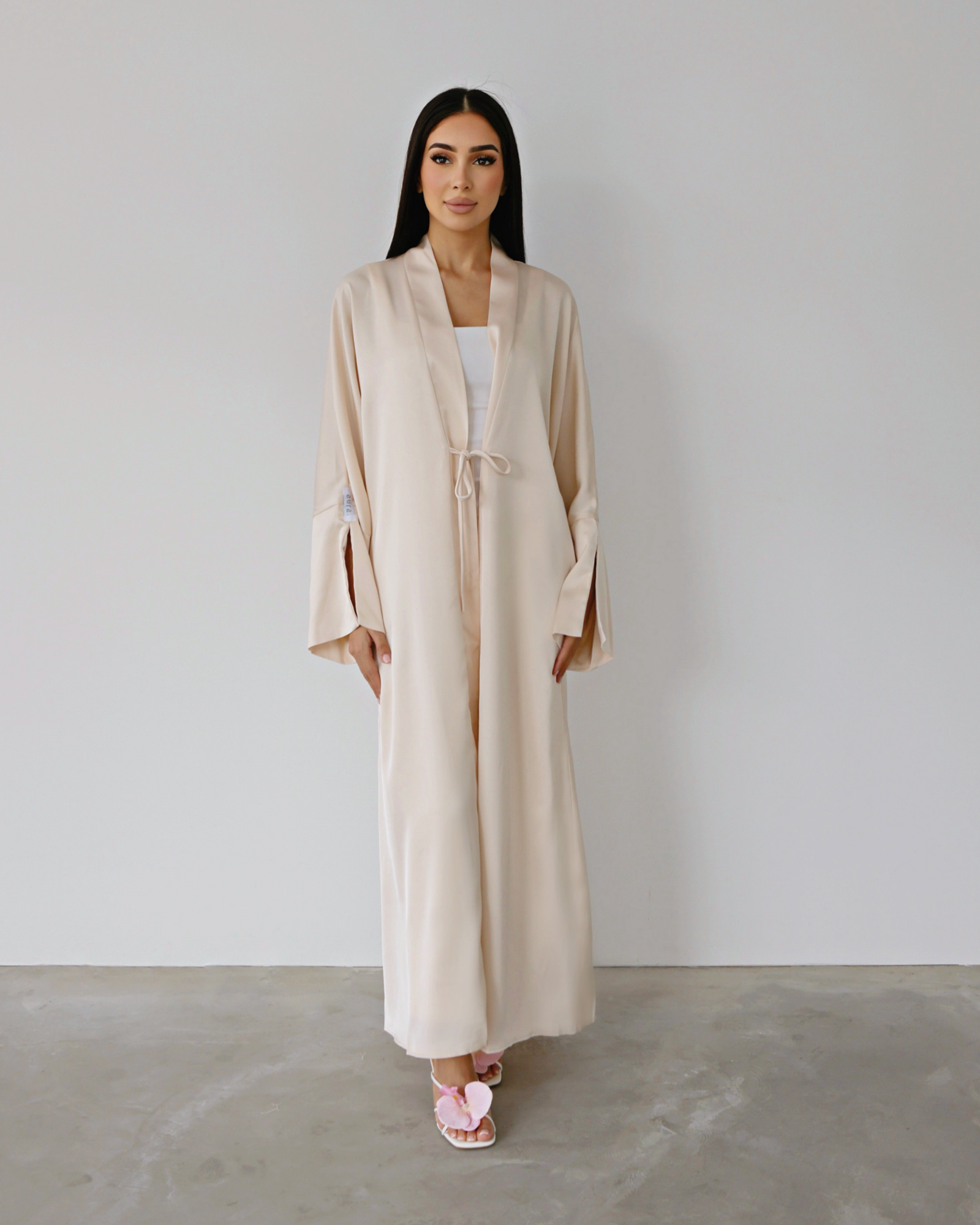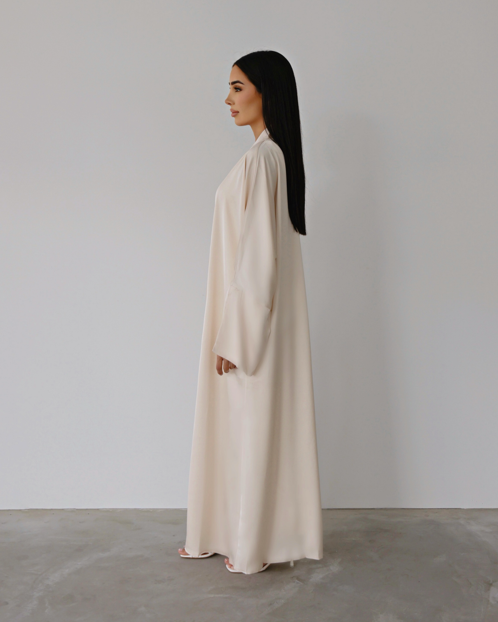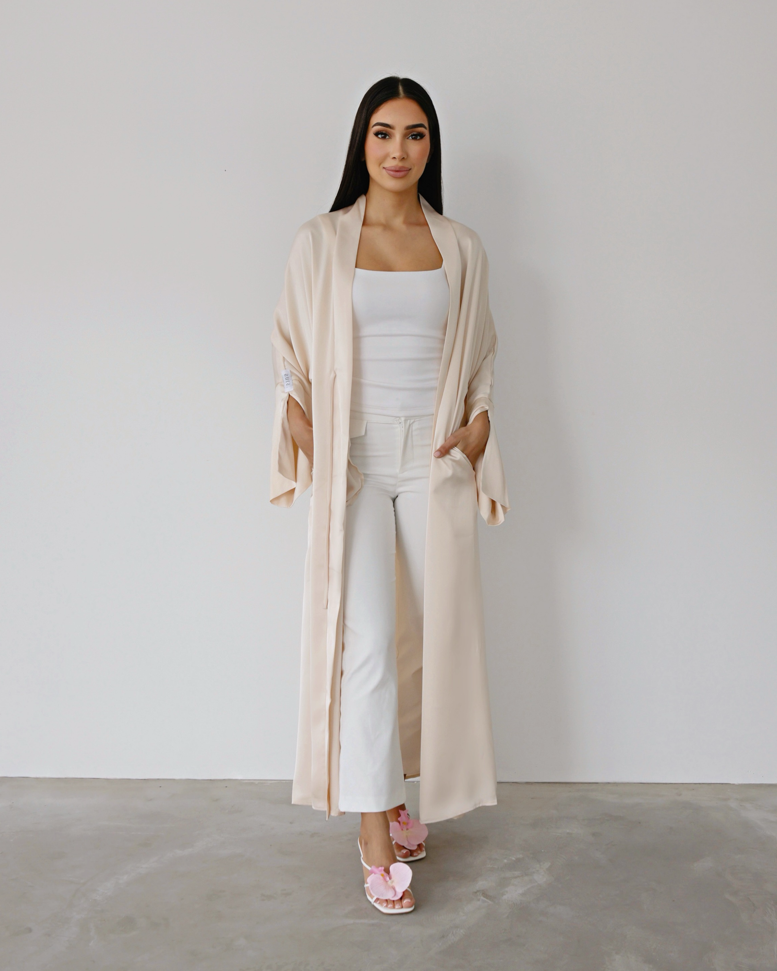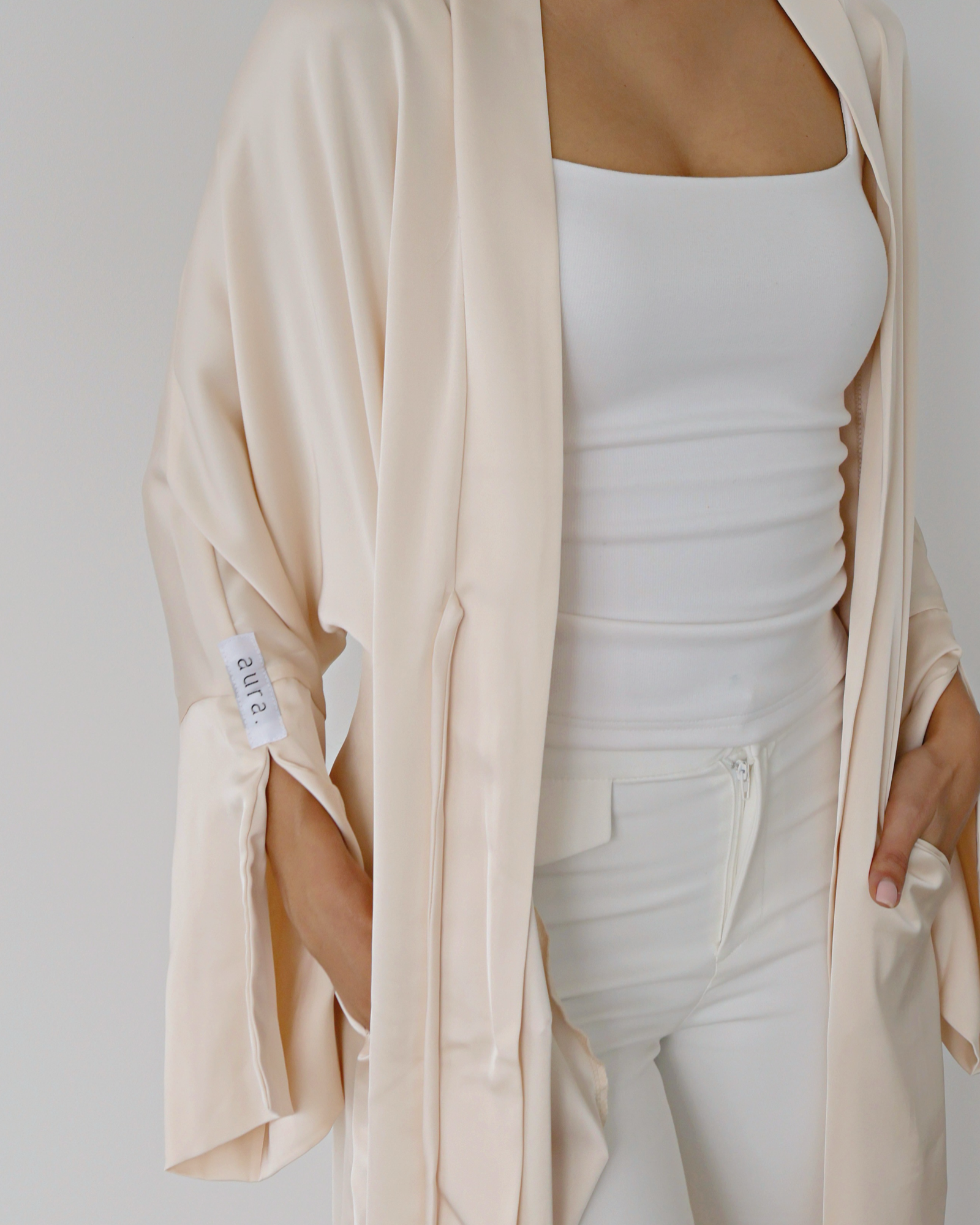 Loose fitting A-line silhouette with concealed pockets, perfect for easy layering.